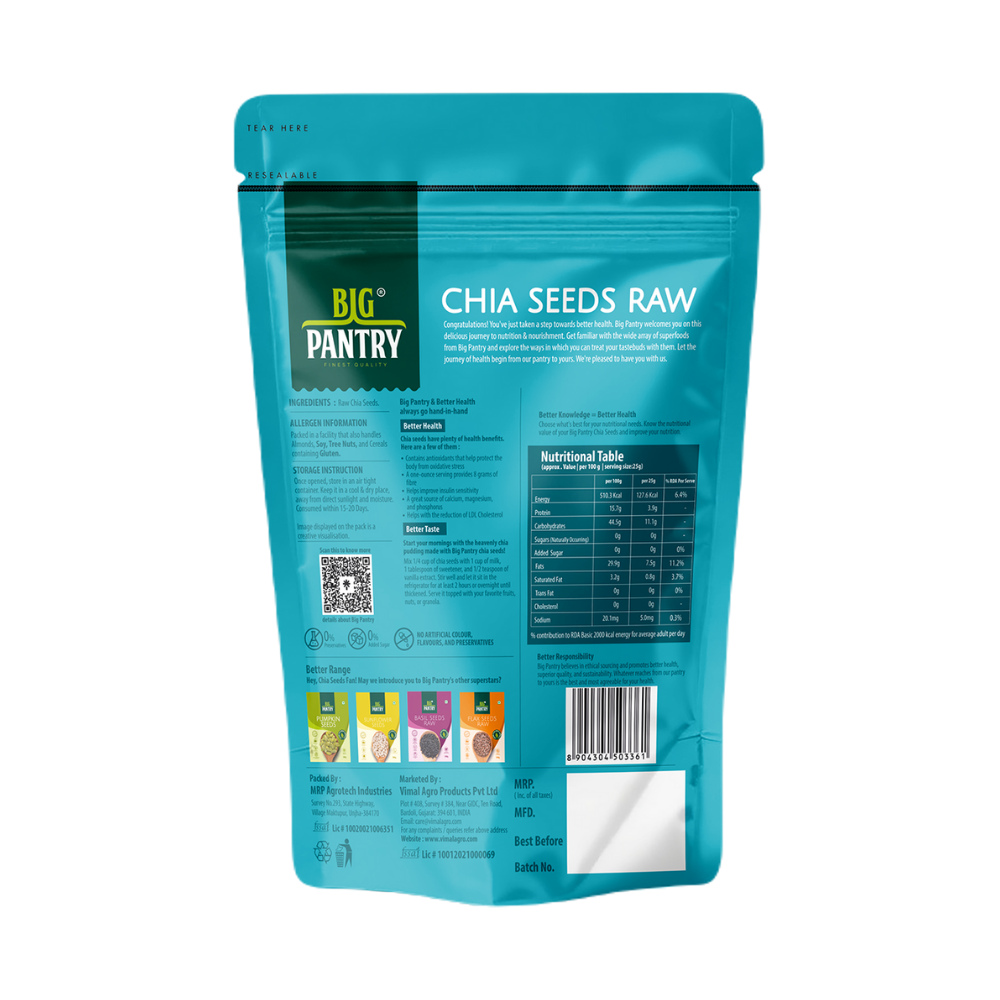 Boost your nutrition with BIG PANTRY Chia Seeds, a powerhouse of omega-3 fatty acids, fiber, and protein. These versatile seeds can be added to smoothies, puddings, or baked goods for a nutritious boost in every bite.