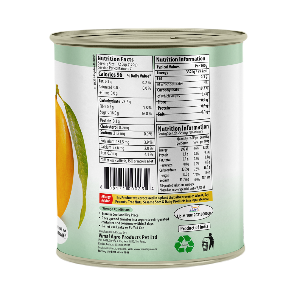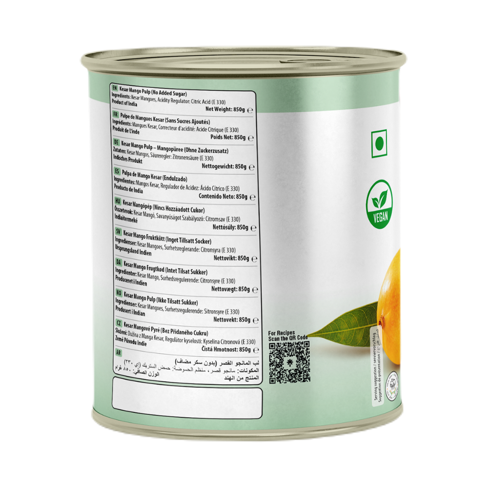 Savour the pure, natural sweetness of SWAD Kesar Mango Pulp (No Added Sugar), made from the finest Kesar mangoes. This 850g pack is perfect for those who want to enjoy the delicious taste of mangoes without any added sugars or preservatives. Rich in flavour and vibrant in colour, it’s ideal for making guilt-free desserts, smoothies, or adding to your breakfast bowl. Taste the wholesome goodness of fresh, sun-ripened Kesar mangoes in their most natural form!